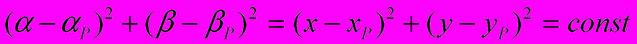 (4.13)соответствуют движению абсолютно твердых тел лишь при квазистатических условиях (условиях равновесия), когда ускорения отсутствуют или ими можно пренебречь (правая часть уравнений (4.12) пренебрежимо мала). Отсутствие деформаций подтверждает постоянство расстояния от любой частицы с переменными Лагранжа () до полюса с координатами P(xP, yP)