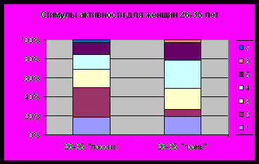 Среди категории респондентов, отнесённых на основании индекса 2 к категории пассива, преобладают женщины, за исключением возраста 26-35 лет. Причём наиболее высока доля женщин в пассиве 36-45 лет.
