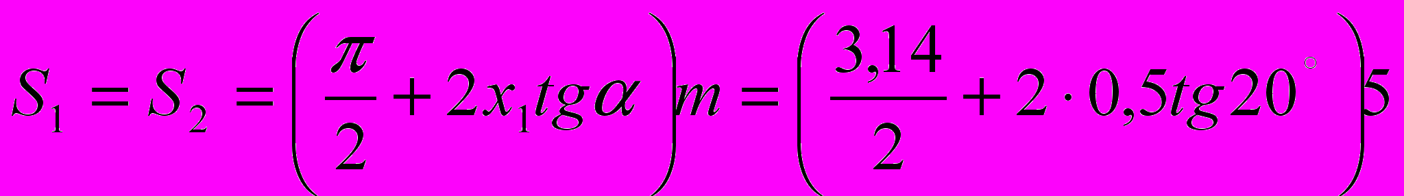 S a1 = 6,19 3,14/2 + 2 0,5 tg 20 - 11(0,14 – 0,01490) = 2,84 мм