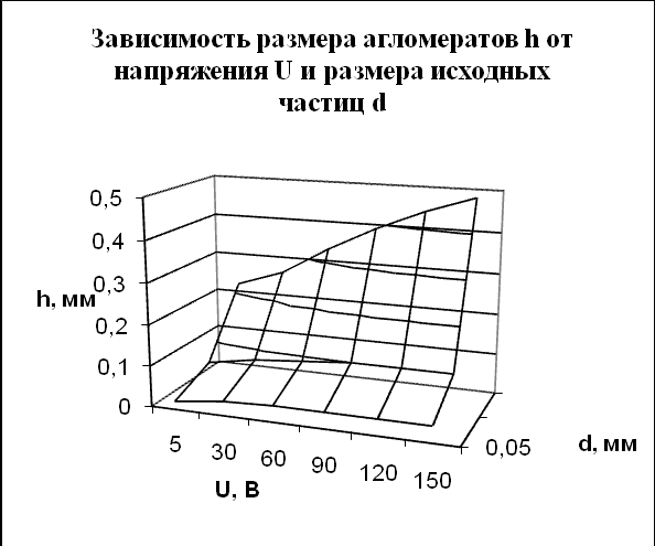 Рис. 6. Зависимость размеров микронеровностей от размера исходных частиц и напряжения на электродах