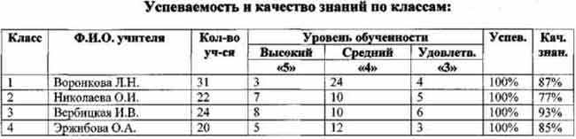 Данные, приведенные в таблице, показывают, что в целом наблюдается высокий уровень обученности.