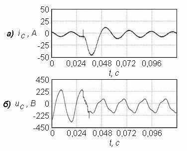 На рис. 3 представлены осциллограммы тока и напряжения, при мгновенном снижении напряжения на вторичной обмотке АТ до 0,43ULV