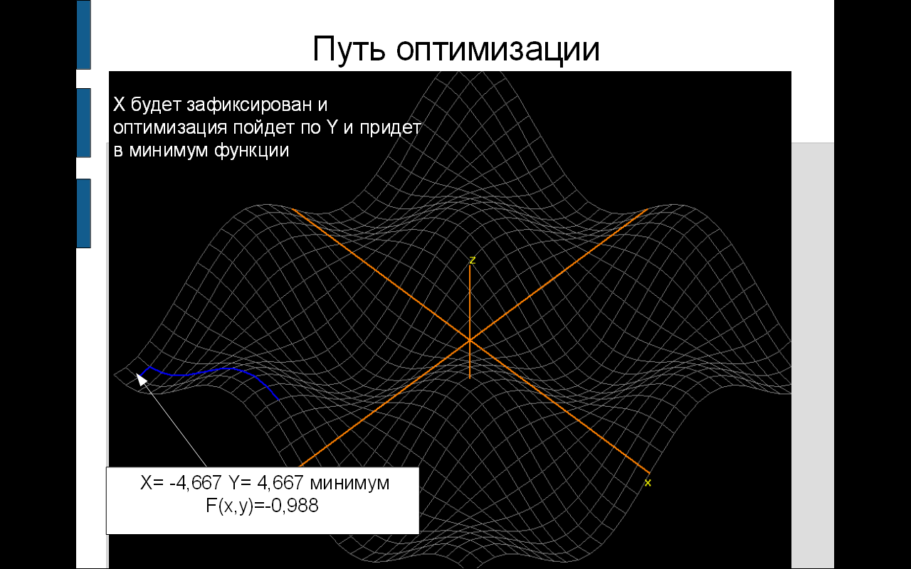 - После фиксирования одной из переменных функция становится оптимизацией функции: