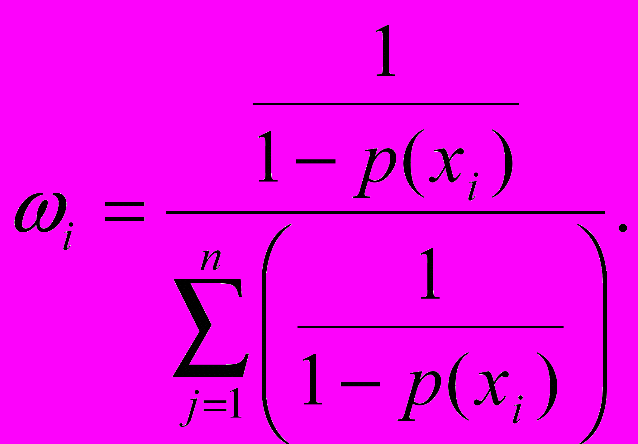 (13)Наблюдению придается тем больший вес, чем больше для него вероятность уклониться от обследования. Сумма всех весов равняется единице.