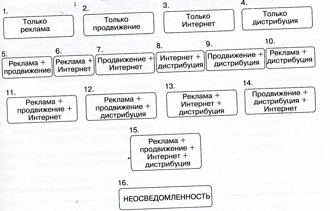 Рис. 3. 16 видов осведомленности о рекламируемом продукте