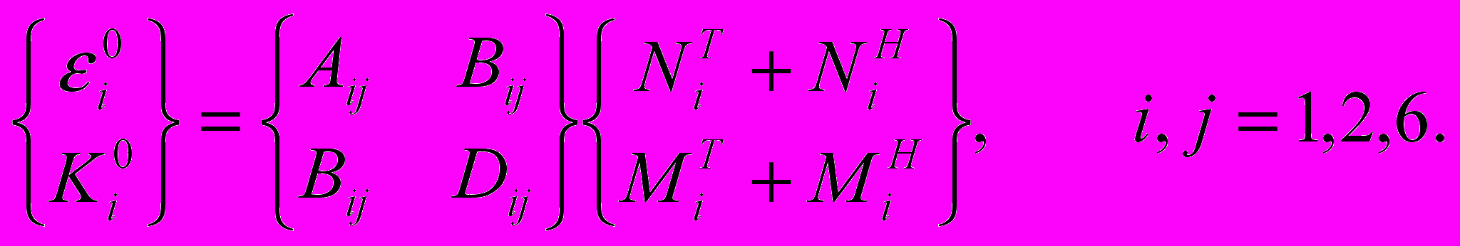- усилия и моменты от натяжения волокон.Матрицы жесткости слоистого элемента представляются выражениями: