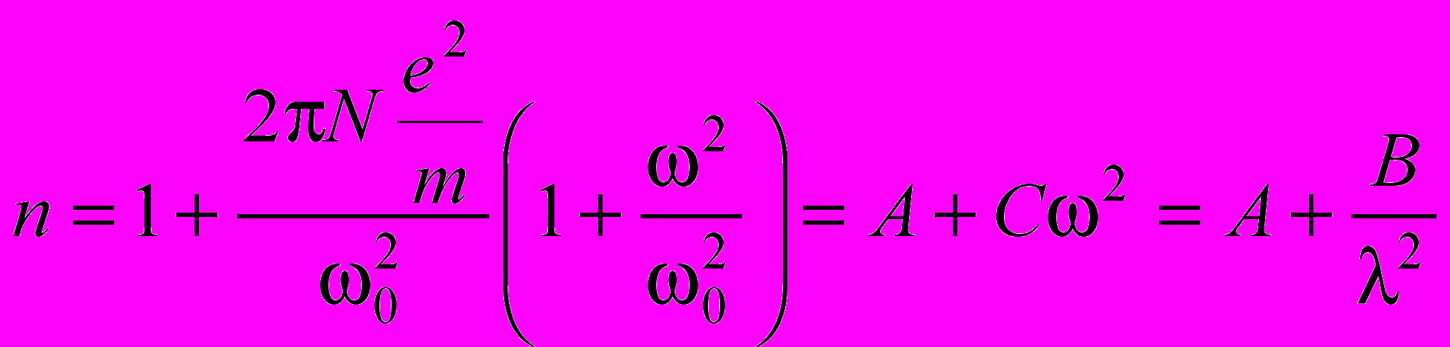 - Формула Коши (следует из упругой теории света – эфир, обладающий свойствами упругого тела, в которой распространяется свет)Обычно