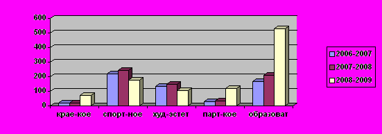 ополнительное образование, предоставляемое школой, представленное спортивными секциями, клубом «Карате-до» и студией «Скульптура», охватывает 22% обучающихся (в 2007-2008 учебном году -20%) Не только в школе, но и в окружающей социокультурной среде учащимся предоставляются большие возможности заниматься как спортом, так и культурно-эстетическим развитием, расширением своего кругозора. Учащиеся нашей школы занимаются в различных кружках и секциях культурных и спортивных учреждений, находящихся вблизи школы. В 2008-2009