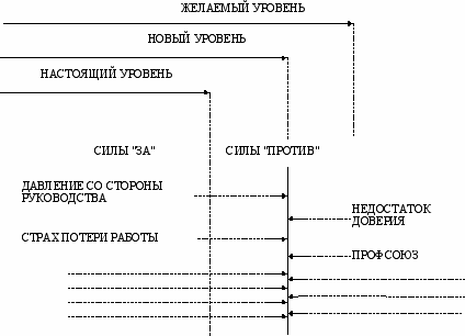 Вы должны проанализировать оба вида сил в действии и посмотреть, что Вы можете сделать для снижения воздействия сил, противостоящих изменению.
