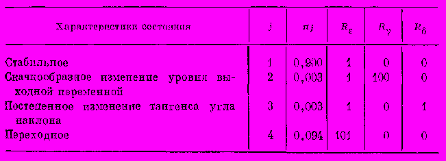 того, что состояние j не изменяется. Ниже приведен пример четырех состояний и соответствующих им условных вероятностей и дисперсий, использованных авторами метода в качестве типичных начальных условий. Дисперсия шума