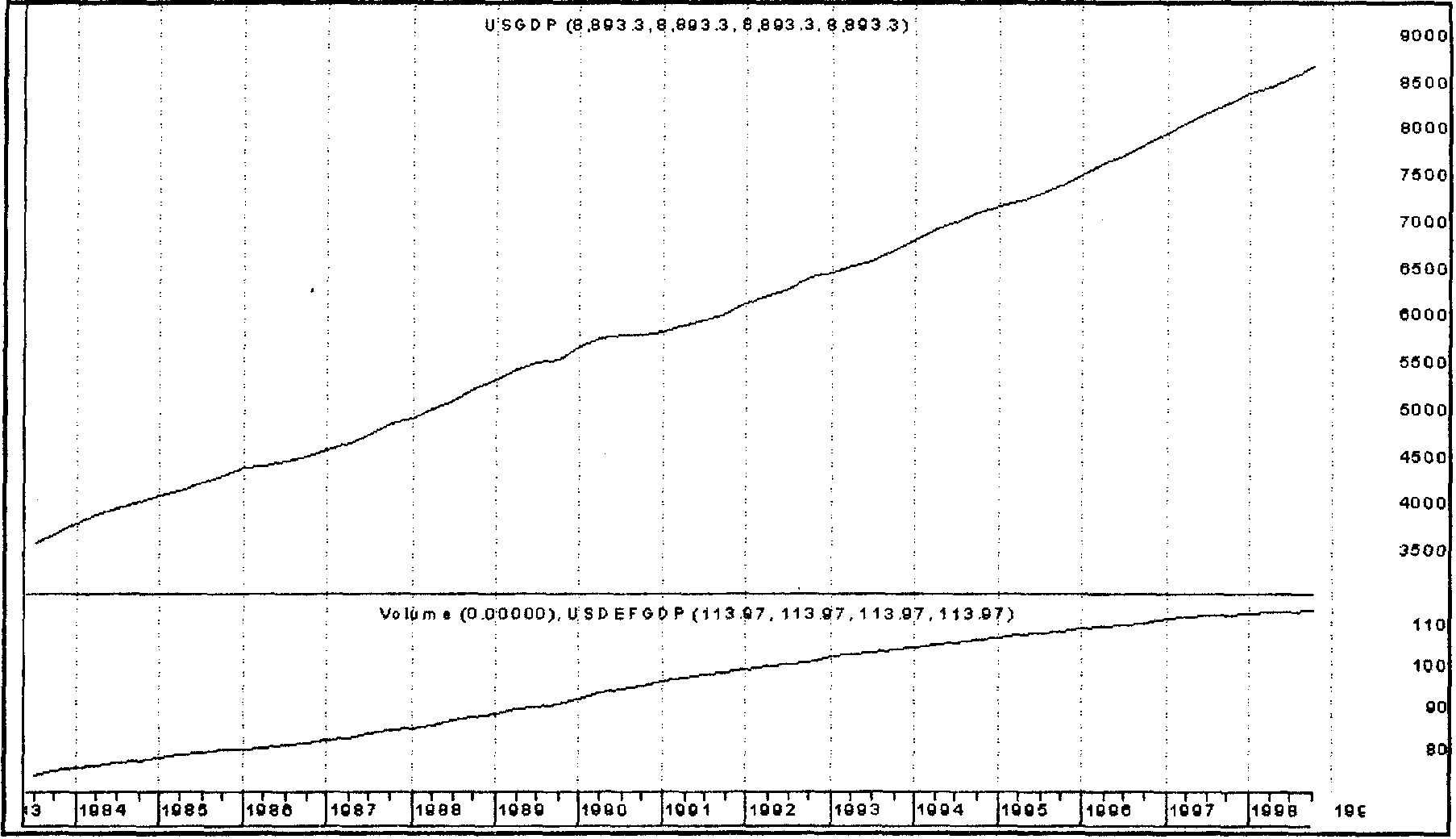 Рис. 8.1. Графики ВВП США (триллионы долларов) и дефлятора ВВП
