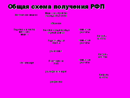 2)Изучив возможности получения, использования и применения радионуклидов в медицине мы пришли к выводу что рассмотренные выше методы и технологии получения короткоживущих радионуклидов и РФП 99Tc m и 199Tl ориентированы, главным образом, на «местное» производство и потребление. Срок годности и радиус транспортировки такой продукции определяется в основном временем физического распада радионуклидов. В условиях России наиболее значимым вариантом, с точки зрения обеспечения клиник короткоживущей продукцией, является организация на имеющихся в регионах ядерных реакторах собственных производств сорбционных генераторов технеция-99m.