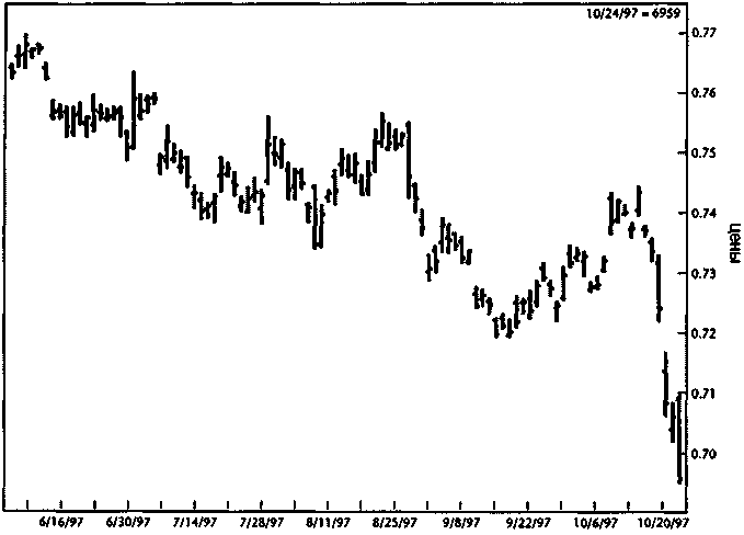 Рисунок 2.9 Австралийский доллар (дневные бары). График создан программой «Navigator» (Genesis Financial Data Services).