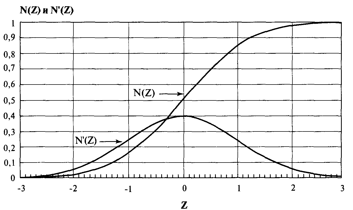 Таким образом, высота кривой при Х=-1 составляет 0,2419705705. Функция N'(Z) также часто выражается как: