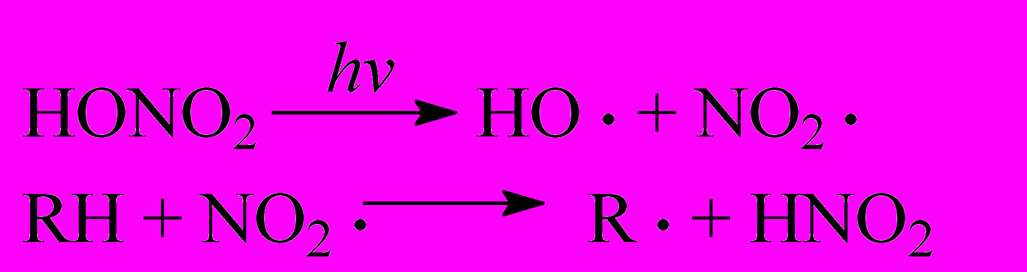 Реакция ускоряется при добавлении инициаторов начальной стадии образования свободных радикалов R.. Цепной механизм характерен для нитрования алканов. В случае нитрования в боковую цепь аренов реакция, как правило, идет с обрывом цепи и заканчивается рекомбинацией радикалов R. и NO2..