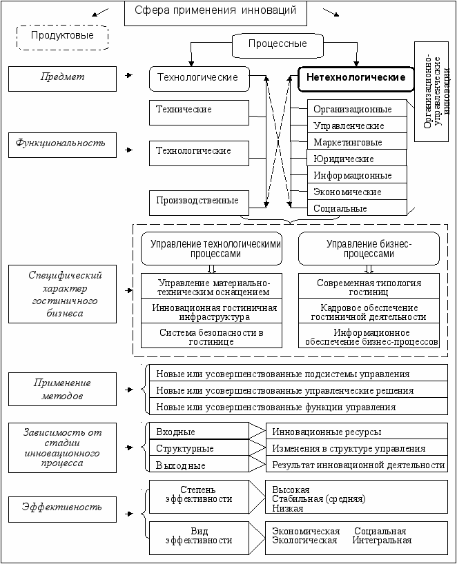 Важнейшей проблемой инновационного управления в гостиничном бизнесе является определение исходного понятия, задающего основные границы объекта и предмета исследования. Для этого необходима идентификация организационно-управленческих инноваций как явления, что требует уточнения структуры и выявления существенных признаков инноваций на основе классификации.