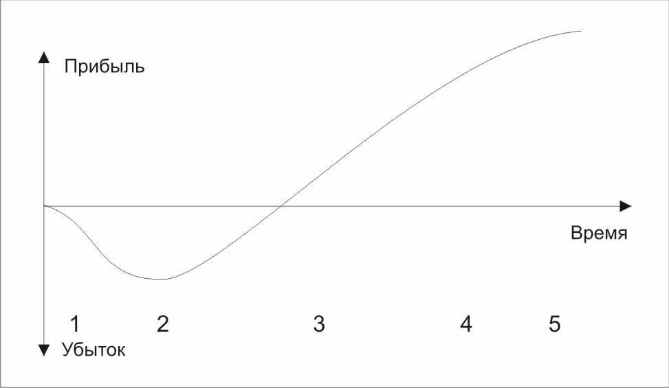 Цифрами на рисунке обозначены этапы развития инновационной компании: