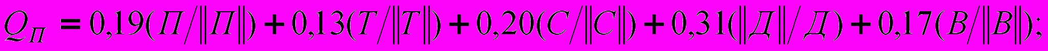 Поскольку аналитический метод ранжирования ЕПК является более объективным, на основе полученных с его помощью коэффициентов весомости получены итоговые формулы комплексного показателя качества (