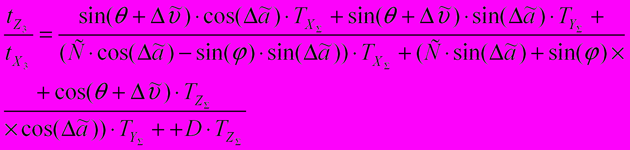 (0)Решением векторно-матричного уравнения (6) является система скалярных трансцендентных уравнений связи проекций вектора напряжённости геомагнитного поля tX3, tY3, tZ3 в базисе феррозондов корпуса инклинометрической аппаратуры:
