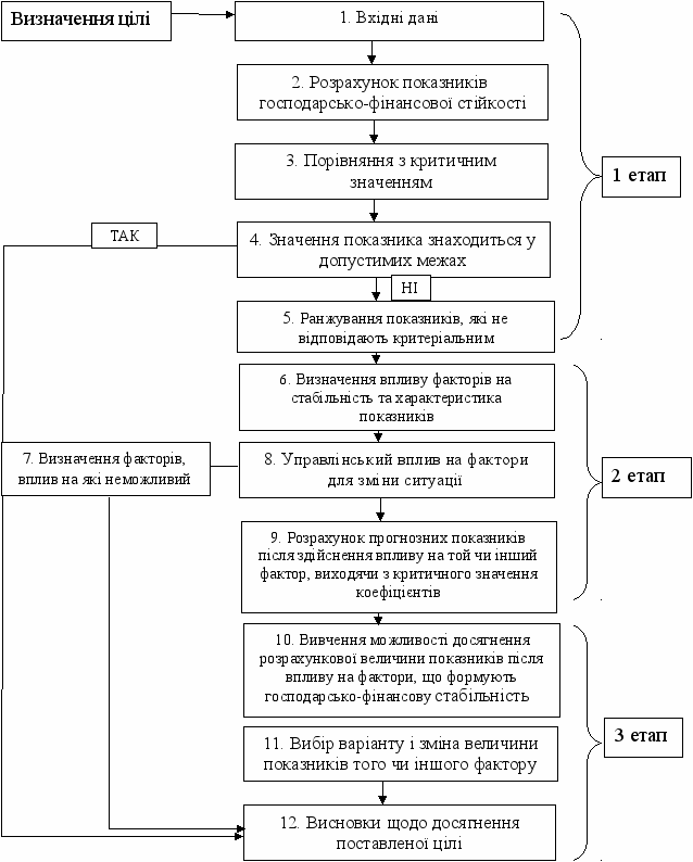 Схема розробки стратегії підвищення господарсько-фінансової стабільності підприємств представлена трьома етапами (див. рис.7.).