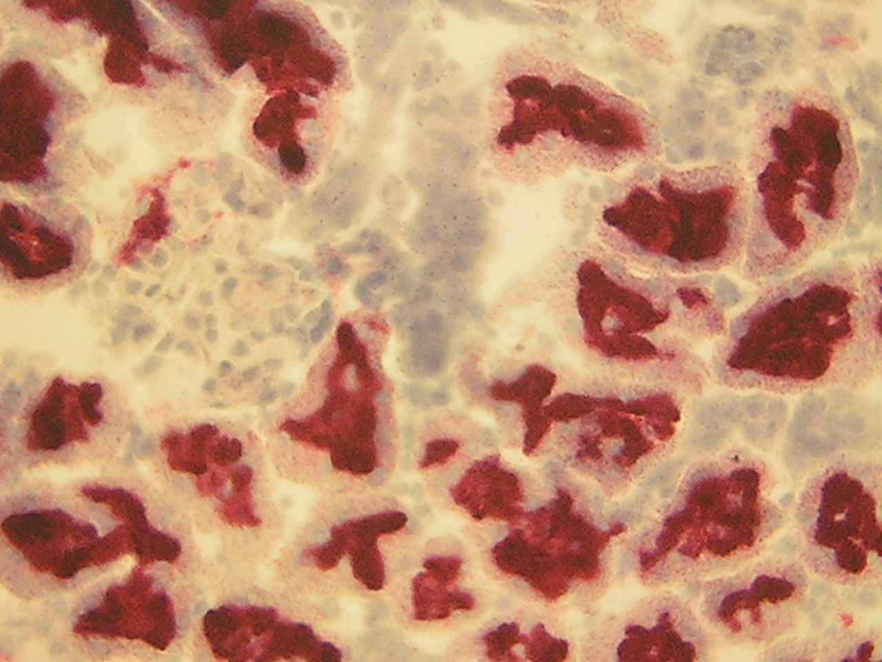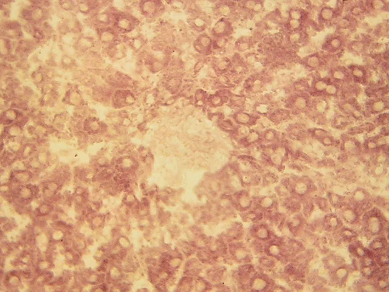 Проводили гистоэнзимохимические исследования ферментов на криостатических срезах печени и почек с определением активности: сукцинатдегидрогеназы с нитротетразолиевым синим и щелочной фосфатазы методом азосоединения нафтол AS-BI фосфата с крепким красным TR с количественным анализом активности исследуемых ферментов методом точечного теста за Автандиловим Г.Г.[1,7].