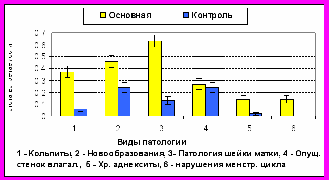 Данные об основных видах гинекологической патологии, выявленной в ходе сравнительного исследования женщин в основной и контрольной группах представлены на рис. 1.