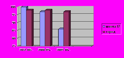 Сравнивая результативность выпускников школы и среднегородские показатели, прослеживается стабильность в овладении учащимися математической грамотностью, в 2009-10 уч. году обученность превышала городские показатели, в 2007-2008уч.году качество знаний было выше.