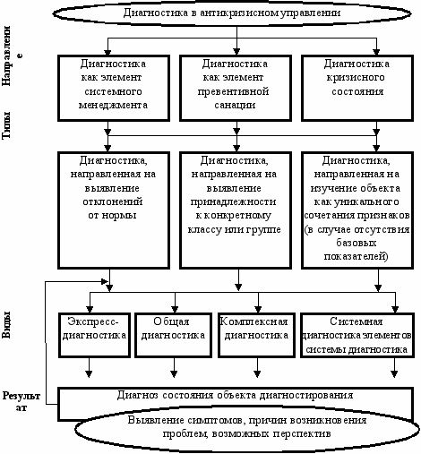 Рис. 3. Классификация типов и видов диагностики в антикризисном управлении