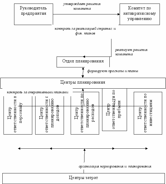 Рис.3. Организационно-управленческая модель процесса планирования в условиях антикризисного управления