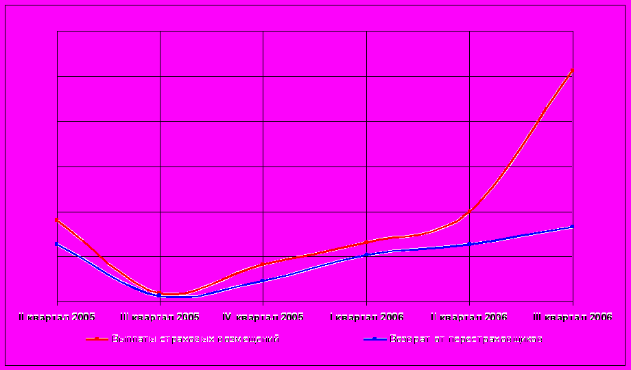 С ростом компании растут и объемы выплаченных страховых возмещений. В связи с тем, что с начала 2006 года компания оставляет больше ответственности на своем удержании, на лицо увеличение разницы между объемами страховых возмещений и возвратов, полученных от перестраховщиков.