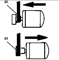 - Натянуть плоский ремень, подавая двигатель вниз с помощью рукоятки (47)
