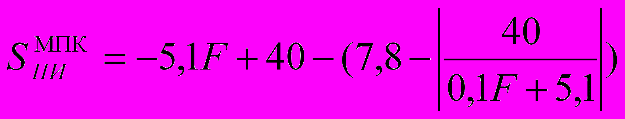 Экономическая интерпретация области устойчивости МПК может быть представлена в виде аналитического уравнения (5), отражающего на определенном участке времени остаток наличных средств (F) хозяйствующего субъекта. При этом в качестве объема производства рассматривается количество продукции, которое может быть произведено и реализовано за данный период времени.
