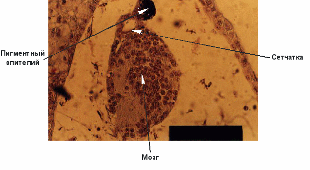 Рис. 9. Индукционное влияние пептидов сетчатки на полипотентные клетки эктодермы ранней гаструлы Xenopus laevis.