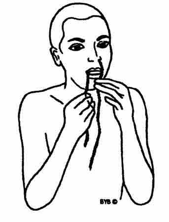 Когда нить доходит до задней стороны глотки, засуньте в рот два первых пальца.