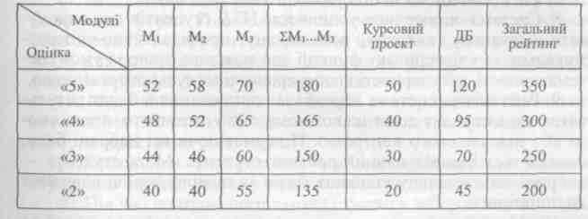 - Для кожного об'єкта контролю кафедра встановлює ранжо-вану кількість балів, яка характеризує рівень якості засвоєння навчального матеріалу.