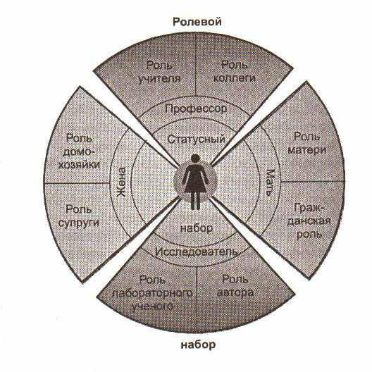 Во-первых, как профессор женщина общается со студентами (роль учителя) и с другими учеными (роль коллеги). Во-вторых, будучи исследователем, она собирает данные (роль лабораторного ученого), которые использует в публикуемых трудах (роль автора). В-третьих, женщина обладает статусом «жены», выступая в роли супруги (друга и сексуального партнера) по отношению к своему мужу, с которым разделяет хозяйственную роль. В-четвертых, она обладает статусом «матери», выполняя обычные обязанности по отношению к детям (материнская роль) и по отношению к школе и прочим организациям (гражданская роль). Как видно, должностные роли тесно переплетаются с другими, выполняемыми в других сферах жизни человека. От него самого зависит, какая роль для него является доминирующей.