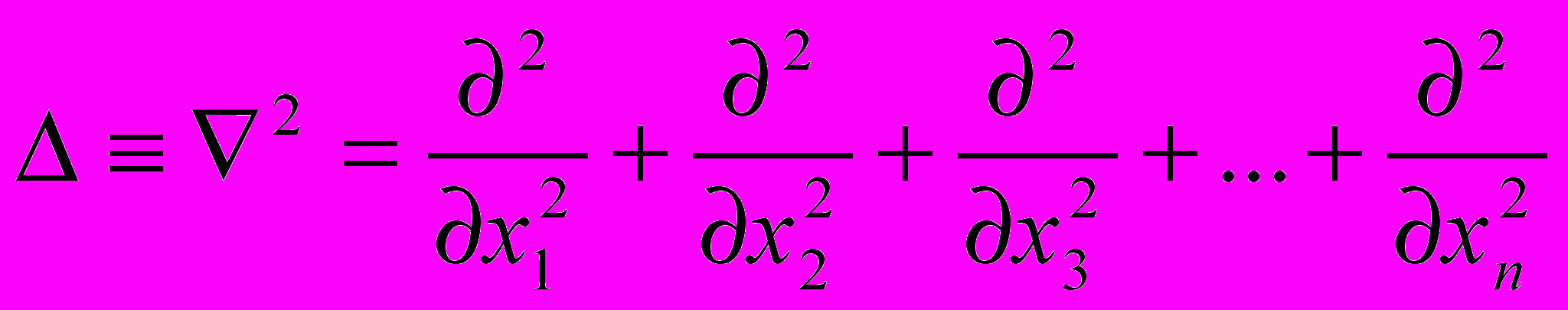 - оператор Лапласа (или лапласиан), эквивалентен квадрату оператора набла, и в частном случае декартовых координат, имеет вид: