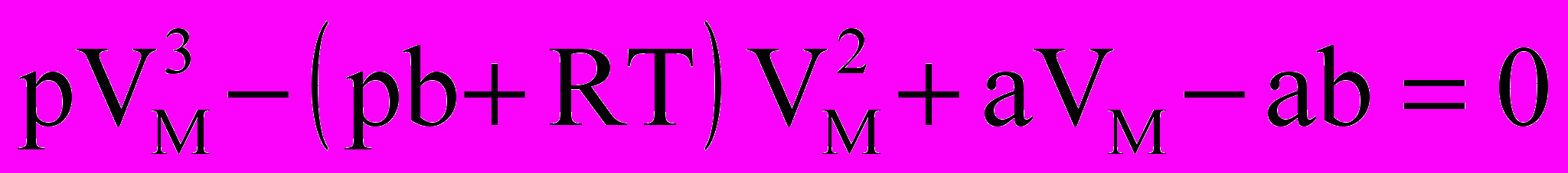 Если в уравнении Ван-дер-Ваальса для одного моля реального газа раскрыть скобки и привести уравнение к общему знаменателю, то получится уравнение третьей степени относительно VМ при заданных р и Т: