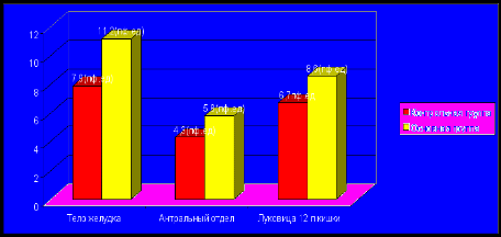 Анализ состояния рН желудка и двенадцатиперстной кишки нам позволяет сделать следующий вывод, что гиперацидность больше характерно для больных с острыми эрозиями двенадцатиперстной кишки и пациентов с эрозиями и язвами , локализованными одновременно в желудке и двенадцатиперстной кишке.