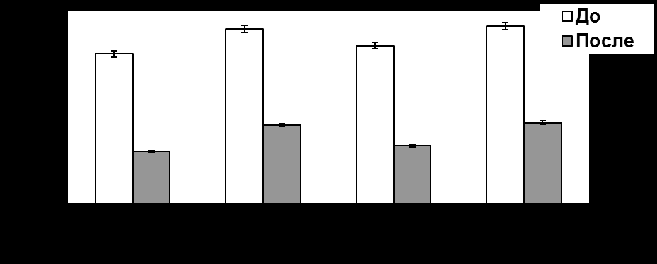 Содержание сырого жира в зерне овса и ячменя практически не изменилось у пленчатых форм (рисунок 3). В частности в зерне овса после обработки содержание протеина увеличилось на 0,3 %, в ячмене на 0,7 %. Немного выше показатель содержания жира у голозерных культур. Жир необходим для нормальной работы пищеварительных желез, для обеспечения организма энергией, усвоения питательных веществ и витаминов.