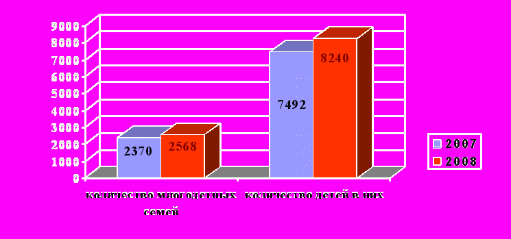 Число многодетных семей в 2008 году по сравнению данными переписи населения 2002 года сократилось на 35% и составляет (по данным Министерства образования и науки на 01.01.2009 года) составляет 2568 семей, в которых воспитывается 8240 детей.