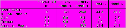 Японии, в отличие от североамериканских и западноевропейских государств, в минувшем году не удалось выйти из полосы экономического кризиса. Это неизбежно отразилось на положении с безработицей, удельный вес которой (3,2%) поднялся до наивысшего за всю послевоенную историю страны уровня. Улучшение положения на рынке труда западноевропейских стран (которое началось значительно позднее, чем в странах Северной Америки, - лишь во 2-м квартале 1994 г.) не смогло кардинальным образом изменить ситуацию с использованием трудовых ресурсов в этом регионе. Уровень безработицы здесь в 2-3 раза превышает аналогичные показатели других стран развитого капиталистического мира.