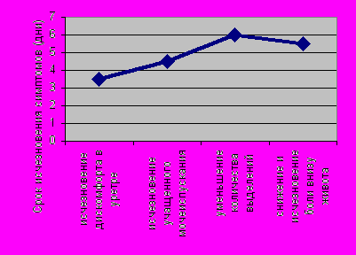 На фоне проводимой терапии пациентки отмечали исчезновение дискомфорта в уретре на 2 день лечения, учащенного мечеиспускания на 2-3, болей внизу живота на 3-4, выделения отсутствовали на 2 день лечения.