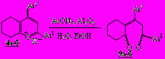 Ранее для объяснения путей образования солей тетрагидрохроменилия в реакциях 2-(3-оксо-1,3-диарилпропил)-1-циклогексанонов 1 с кислотными реагентами было высказано предположение, что промежуточными продуктами при солеобразовании являются тетрагидрохромены 5.