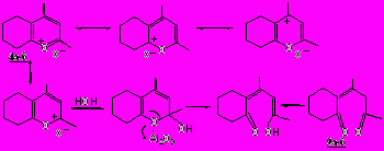 Нами впервые исследован щелочной гидролиз солей тетрагидрохроменилия с целью выяснения возможности образования карбоциклических систем в основных средах.