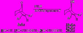 В спектрах ЯМР 13С оксимов 18а,б,г, семикарбазонов 19а,б,г, тиосемикарбазонов 20а,б,г наблюдается смещение сигнала мостикового углеродного атома в сильное поле 156,5-161,3 м.д.