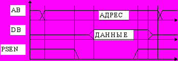 Цикл чтения памяти программ по демультиплексной магистрали.