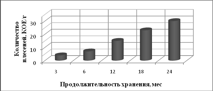 Рисунок 11. Кинетика развития плесневых грибов в процессе хранения полученной гречневой крупы