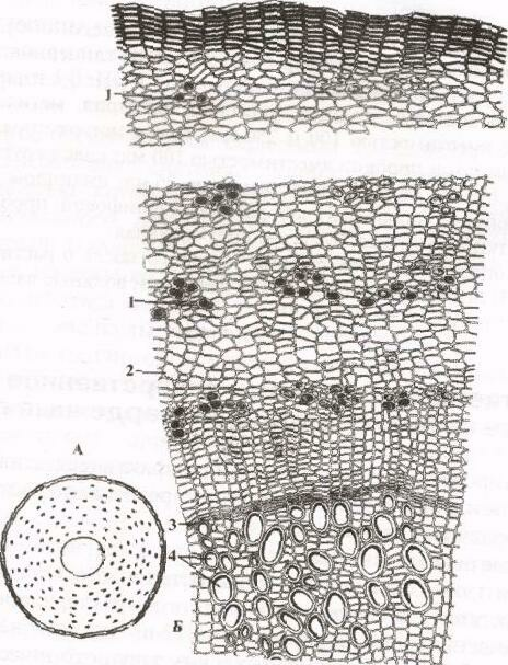 4 — эпидермис; 5 — гигантские клетки; 6 — склеренхимный слой;