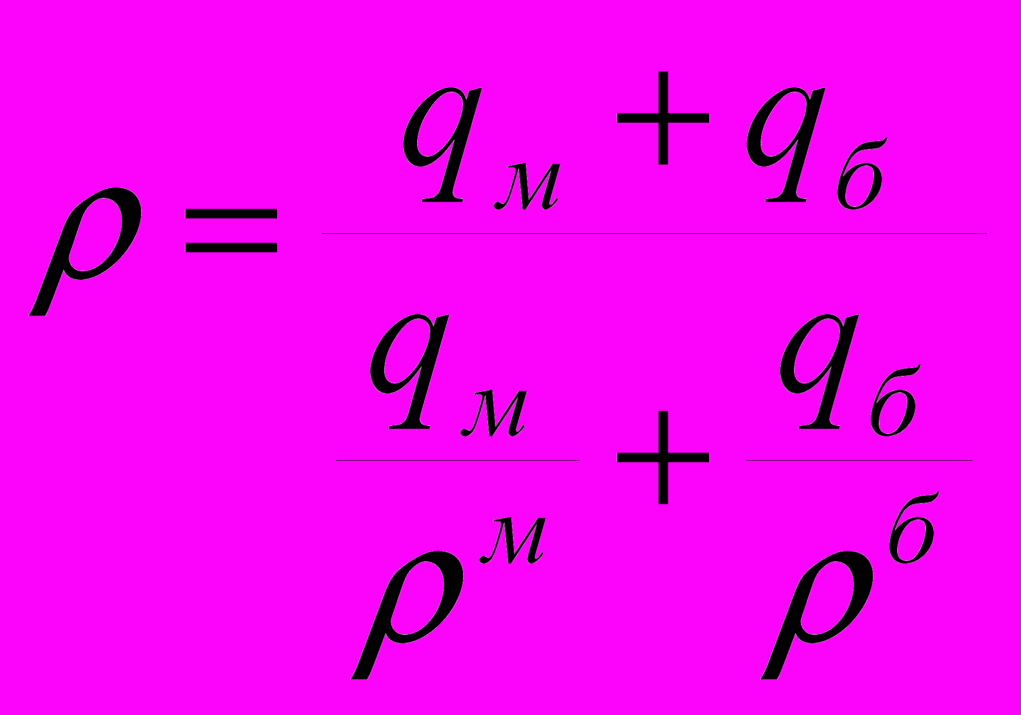 Истинную плотность смеси r, г/см3 вычисляют по формуле
